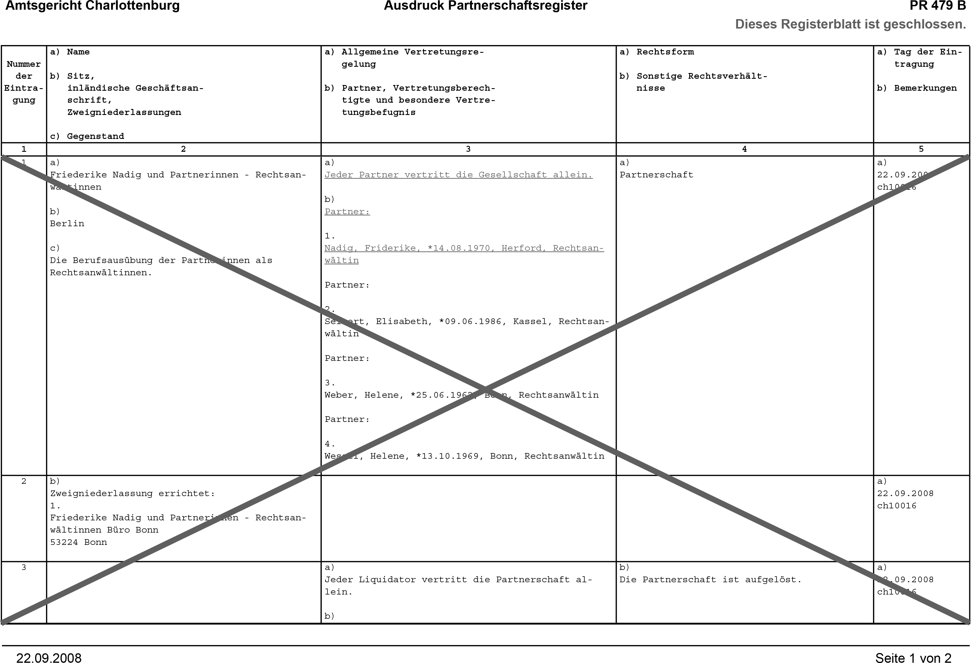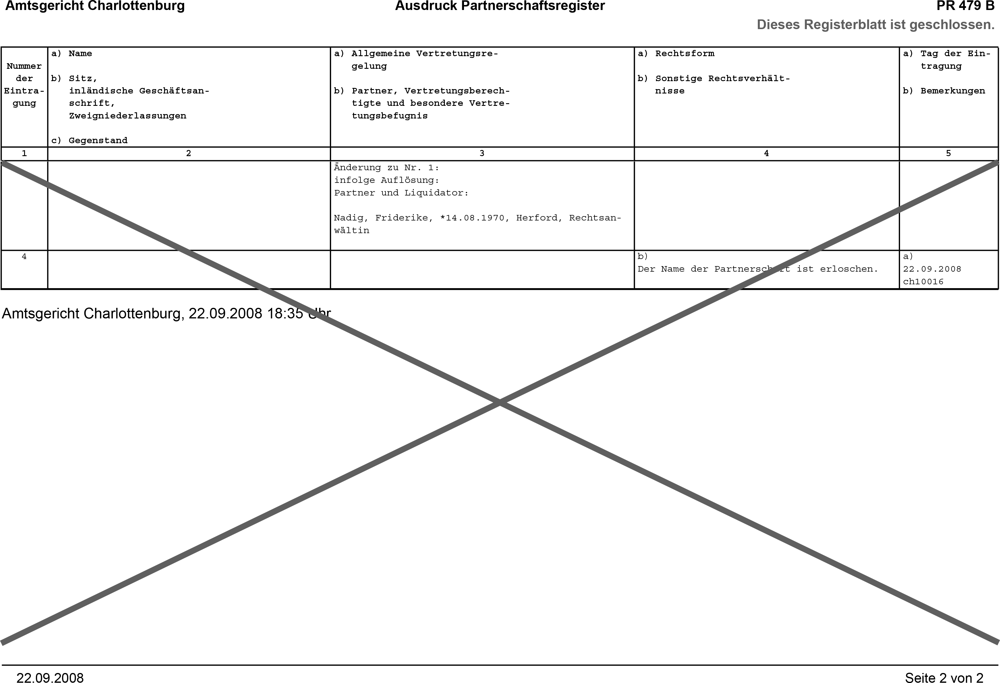 Muster 184: Eintragung des Erlöschens des Namens der Partnerschaft
